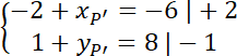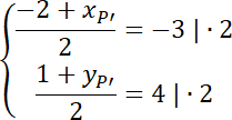 Zauważ, że szukanie obrazu punktu w symetrii środkowej względem innego punktu jest tym samym co odnajdywanie końca odcinka, gdy masz dany środek i drugi koniec. Zatem: