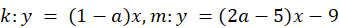 Prosta k i m są równoległe, czyli mają takie same współczynniki kierunkowe prostych. Porównaj je i oblicz liczbę a.