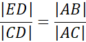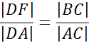 Możemy zauważyć, że trójkąty ABC i EDC oraz DAF i ABC są do siebie podobne z cechy kąt – kąt – kąt, więc możemy zapisać zależności wynikające z podobieństwa: