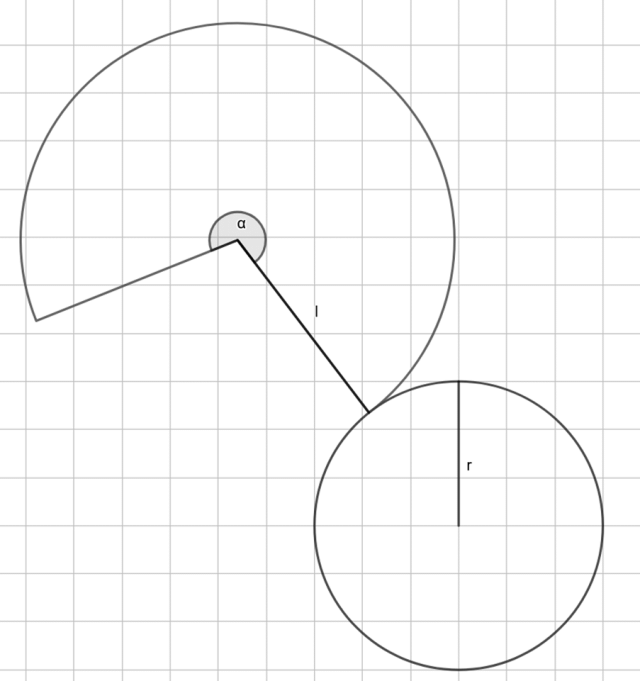 Na koniec narysuj siatkę stożka, dla podanej długości promienia, tworzącej i kąta środkowego.