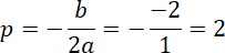 Współrzędną p wierzchołka paraboli opisanej wzorem