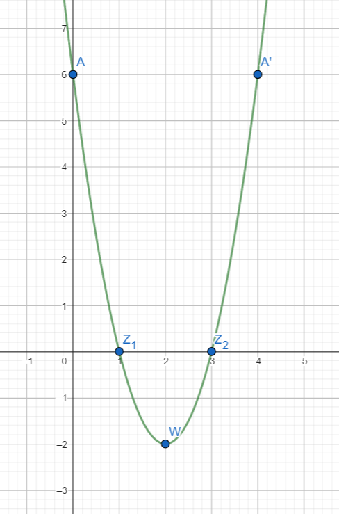 Współrzędne wierzchołka paraboli będącej wykresem funkcji f, czyli punktu, w którym parabola osiąga swoje skrajne wartości.Miejsca zerowe funkcji f, czyli wartości x, dla których funkcja przyjmuje wartość zero, jeśli takie istnieją.Współrzędne punktu przecięcia wykresu funkcji f z osią OY oraz współrzędne punktu symetrycznego do niego względem osi symetrii paraboli będącej wykresem funkcji f.