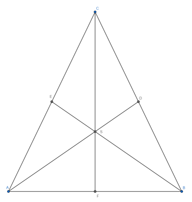 Środkowe trójkąta przecinają się w jednym punkcie, który dzieli (licząc od wierzchołka) każdą ze środkowych w stosunku 2 : 1, więc możemy zapisać, że: