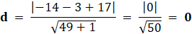 Skorzystaj ze wzoru na odległość punktu od prostej: