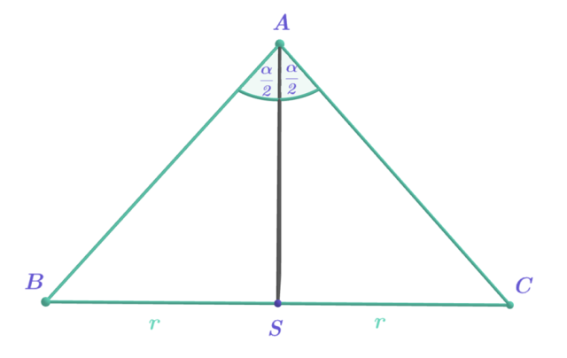 Uzależnij jeden z brakujących boków od promienia r oraz funkcji cotangens połowy kąta α.