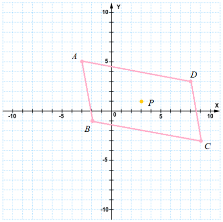 Zauważ, że skoro punkt P jest środkiem przekątnych AC i BD, to odpowiednie współrzędne punktów C i D możesz obliczyć, korzystając ze wzoru