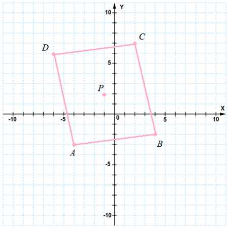 przecięcia się przekątnych w równoległoboku ABCD. Pamiętaj, że także trzeba narysować równoległobok ABCD w układzie współrzędnych.