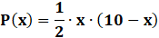 Rozważ zbiór wszystkich trójkątów prostokątnych, gdzie suma długości podstawy x i wysokości poprowadzonej na tę podstawę wynosi 10. Wyznacz wzór funkcji P, która określa pole takiego trójkąta w zależności od x, oraz podanie dziedziny tej funkcji.