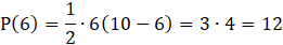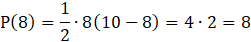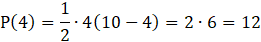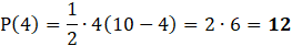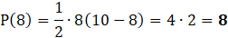 Rozważ zbiór wszystkich trójkątów prostokątnych, gdzie suma długości podstawy x i wysokości poprowadzonej na tę podstawę wynosi 10. Oblicz pole trójkąta, gdy x przyjmuje wartości: 2,4,6,8.