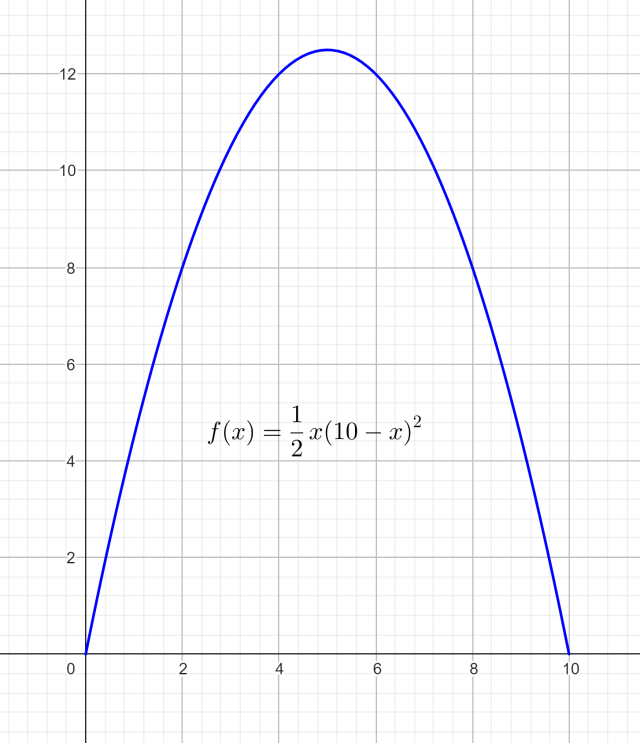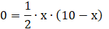 Rozważ zbiór wszystkich trójkątów prostokątnych, gdzie suma długości podstawy x i wysokości poprowadzonej na tę podstawę wynosi 10. Narysuj wykres funkcji f.