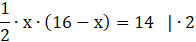 Rozważ zbiór wszystkich trójkątów prostokątnych, gdzie suma długości podstawy x i wysokości poprowadzonej na tę podstawę wynosi 10. Oblicz dla jakiej wartości x pole tego trójkąta jest równe 14.