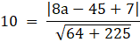 Skorzystaj ze wzoru na odległość punktu od prostej: