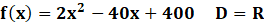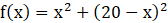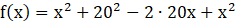 Liczba 20 jest wynikiem dodawania dwóch składników, z których jeden z nich jest równy x. Znajdź wzór funkcji f, która określa wartość sumy kwadratów tych składników w zależności od x, oraz podanie dziedziny tej funkcji.
