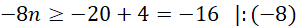 Liczba n należy także do zbioru liczb naturalnych, więc: