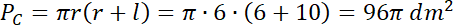 Wyznacz pole całkowite otrzymanej w wyniku obrotu trójkąta prostokątnego o przyprostokątnych długość 6 dm i 8 dm wokół dłuższej przyprostokątnej.