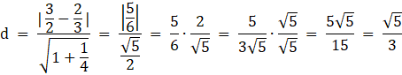 Skorzystaj ze wzoru na odległość między dwoma prostymi równoległymi: