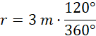 Dany jest stożek, którego powierzchnią boczną jest wycinek koła o promieniu 3 m i kącie środkowym 120°. Znajdź promień jego podstawy oraz wysokość.
