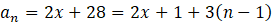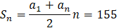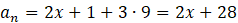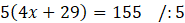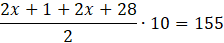 Rozwiąż równanie: (2𝑥 + 1) + (2𝑥 + 4) + (2𝑥 + 7) + . . . + (2𝑥 + 28) = 155