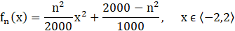 f(x) reprezentuje wysokość powierzchni cieczy w zależności od odległości x od osi OY,n oznacza liczbę obrotów zbiornika na minutę.