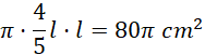 Oblicz szukaną tworzącą wstawiając wyznaczony stosunek do wzoru na pole powierzchni bocznej i rozwiązując powstałą równość.