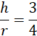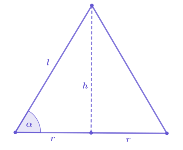 Stwórz rysunek pomocniczy z przekrojem stożka. Korzystając z podanej wartości tangensa jednego z kątów uzależnij promień od wysokości.