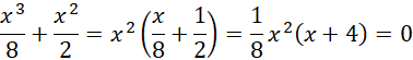 Z zapisu iloczynowego równania można odczytać, że występują dwa pierwiastki: x = 0 oraz x = –4.