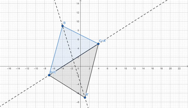 Przekształć go względem środka boku AC.