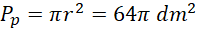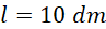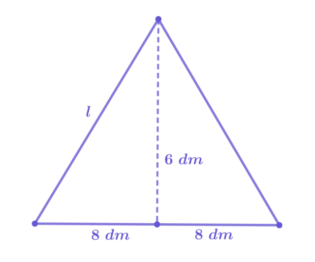W wyniku rozpatrywanego obrotu wysokość h otrzymanego stożka będzie wynosić 6 dm, a promień jego podstawy 8 dm.