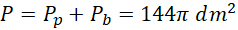 Oblicz pole powierzchni całkowitej jako sumę pola podstawy i pola powierzchni bocznej: