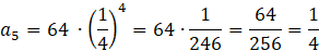 Masz wyznaczyć piąty wyraz malejącego ciągu geometrycznego, w którym liczby 64, 𝑥, 4 są odpowiednio pierwszym, drugim i trzecim jego wyrazem.