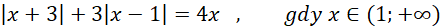 Musisz obliczyć wartości bezwzględne znając przedział zakresu x, a następnie obliczyć wartość wyrażenia.