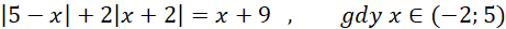 Musisz obliczyć wartości bezwzględne znając przedział zakresu x, a następnie obliczyć wartość wyrażenia.