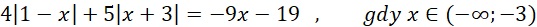 Musisz obliczyć wartości bezwzględne znając przedział zakresu x, a następnie obliczyć wartość wyrażenia.