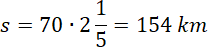 Najpierw oblicz drogę jaka jest do pokonania korzystając z faktu, że samochód jadący z prędkością 70 km/h pokonał ją w 2h i 12 minut. Skorzystaj ze wzoru