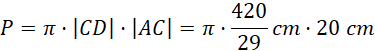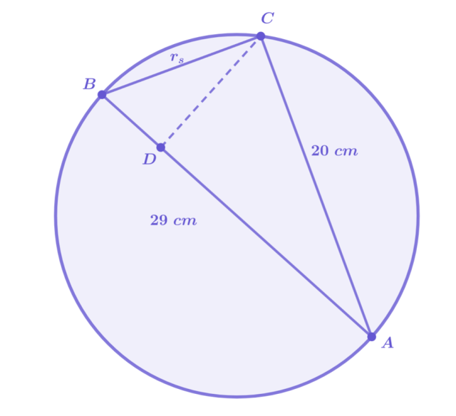 Jeden z punktów na brzegu koła jest jednocześnie końcem cięciwy długości 20 cm oraz średnicy długości 29 cm. Poprzez obrót tej cięciwy wokół średnicy powstaje pewna bryła. Wyznacz pole jej całkowitej powierzchni.