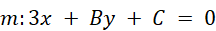 Twoim zadaniem jest obliczenie współczynników w równaniu ogólnym prostej m, których brakuje, uwzględniając, że prosta