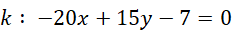 , przekształcając prostą k w postaci kierunkowej, a następnie oblicz