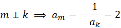 Zauważ, że skoro proste m i k są prostopadłe, to ich współczynniki spełniają równość