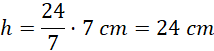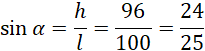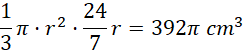 Dany jest stożek o objętości 392π cm3. Kąt α pomiędzy jego tworzącą a podstawą jest taki, że sin α = 0,96. Znajdź jego wysokość oraz promień podstawy.