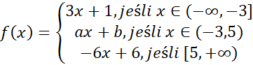 Należy wyznaczyć takie parametry a i b, aby dana funkcja była ciągła na całym zbiorze