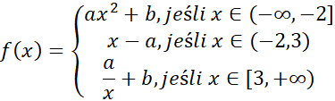 Należy wyznaczyć takie parametry a i b, aby dana funkcja była ciągła na całym zbiorze