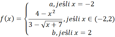 Należy wyznaczyć takie parametry a i b, aby dana funkcja była ciągła na całym zbiorze [-2,2].