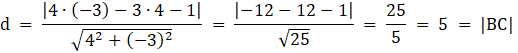 Skorzystaj ze wzoru na odległość punktu od prostej:
