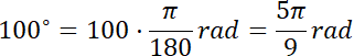 Aby zamienić miarę stopniową kąta na miarę łukową (w radianach), wystarczy pomnożyć liczbę stopni przez