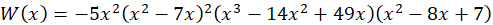 A. Liczba 7 jest pięciokrotnym pierwiastkiem wielomianu W.