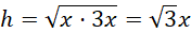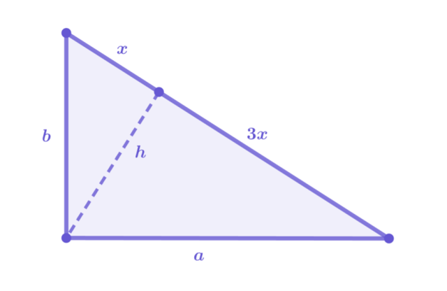 Dany jest trójkąt prostokątny, w którym wysokość wychodzi z kąta 90°. Dzieli ona przeciwprostokątną na 2 odcinki w taki sposób, że jeden z nich jest 3 razy dłuższy od drugiego.