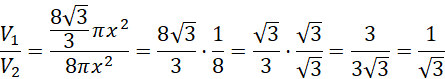 Oblicz ich objętości i zapisz ich stosunek. Zauważ, że jest on równy temu podanemu w tezie, co kończy dowód.