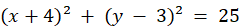 Podstaw współrzędne punktów do równania i sprawdź, czy wyrażenie daje wynik 25. Aby narysować okrąg, znajdź najpierw jego środek i promień.