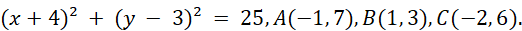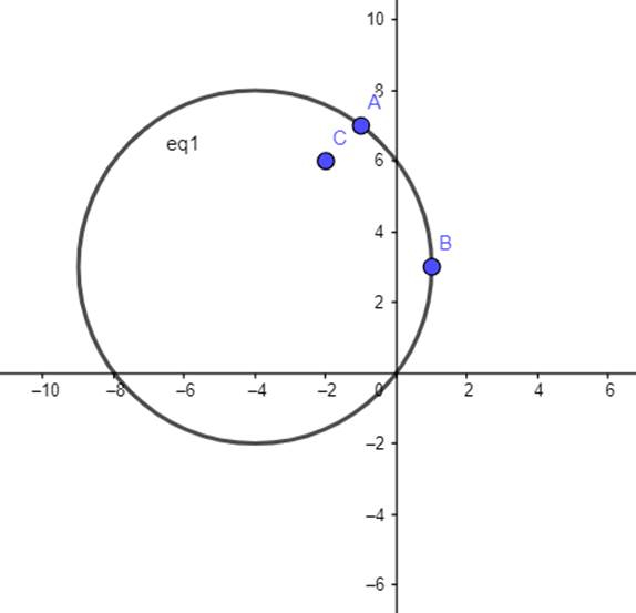 W tym zadaniu musisz upewnić się algebraicznie, które z punktów A, B lub C należą do okręgu. Następnie należy narysować okrąg w układzie współrzędnych i zaznacz punkty A, B, C, gdzie: