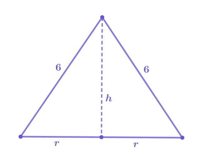 Stwórz rysunek pomocnicy. Uzależnij wysokość trójkąta będącego przekrojem od promienia podstawy stożka. Pamiętaj o odpowiednich założeniach wynikających z faktu, że poszczególne wielkości geometryczne muszą być dodatnie.